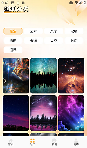 2、打开软件后,你会看到主界面,目光移到底部导航栏,找到那个“分类”选项点进去,就可以开始探索各种不同主题的壁纸了。