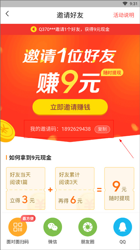 新人刚下载注册,填上邀请码,再把新手任务做一做,凑个10块钱提现还是挺轻松的。主要的大头还是靠邀请朋友,你邀请的朋友越多,你拿到的金币就越多。而且你朋友在上面看文章,你也能分到一部分金币,人多力量大嘛。