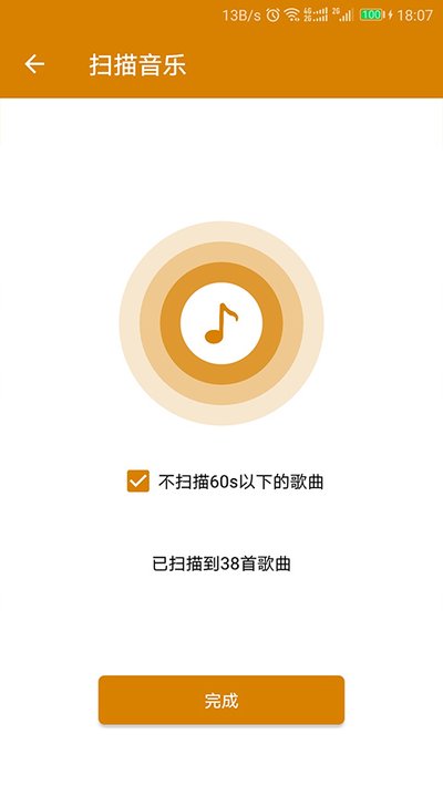2、扫描功能反应很快。它会把你手机犄角旮旯的音乐文件全都给你找出来,管理起来方便多了,不用自己一个一个文件夹去找。