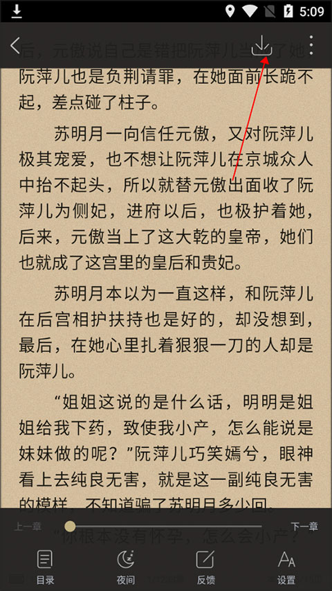 4、看到下面截图里那个下载的箭头没,点一下它就可以把整本书缓存到手机上,之后没网也能看了。