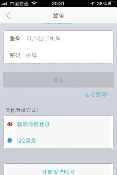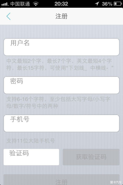打开App后,在登录界面拉到最下面,看到没,那行小字“注册爱卡账号”,点一下。
