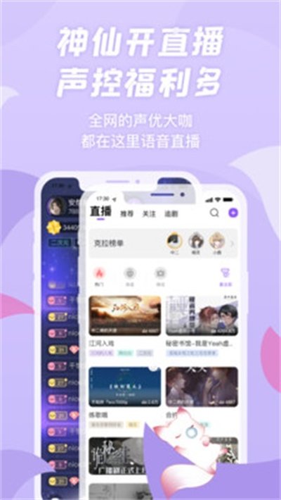 划重点,声控姐妹们的快乐老家来了!我刚发现,阿杰、夏磊、吴磊、柯暮卿这些平时只能在作品里听到的神仙CV,居然都在这里开语音直播!天呐,还能跟他们连麦聊天,这种福利谁能扛得住啊!除了这些大佬,还有很多声音好听的主播陪你聊天唱歌,或者当个睡前哄睡电台,不管什么时候打开,总有人在直播间里用声音陪着你。