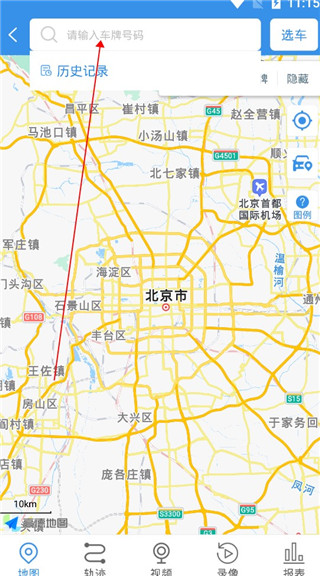 5、划重点,在界面下方还有几个标签页,可以切换查看这辆车的历史轨迹、录像回放或者实时视频。