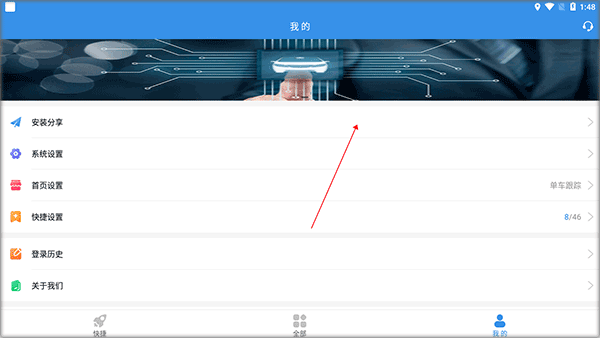 1、打开云查车,在“我的”那个页面里,找到一个叫“安装分享”的选项,点它。