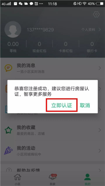 4、等你自己认证通过之后,还可以在“我的房屋”里给家人“添加”账号。当然,前提是你家人得先注册好这个APP的账号才行。