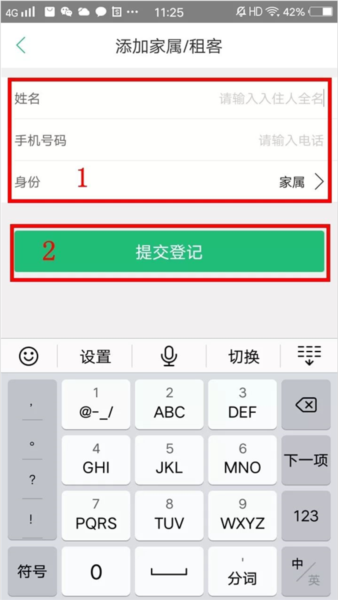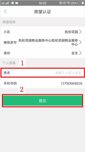 2、接下来就是选你的房号、确认是业主还是家属,填上名字,然后点“提交”。