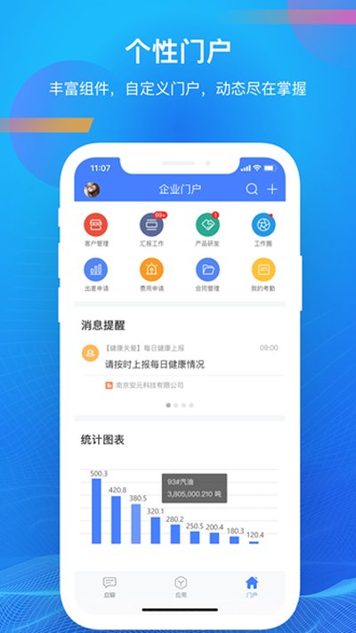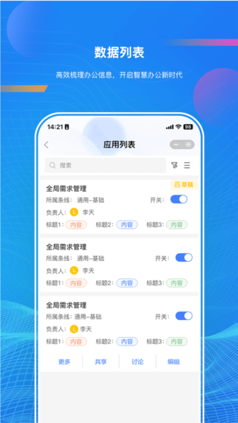 2)智能移动工作台:现在谁还天天守在电脑前啊。通过手机随时随地就能访问工作台,查阅资料、处理事情,工作效率实打实地提高了。
