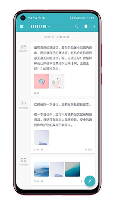 1、【云同步】这点是底线,手机丢了也不怕,随时随地都能把你的日记备份好。