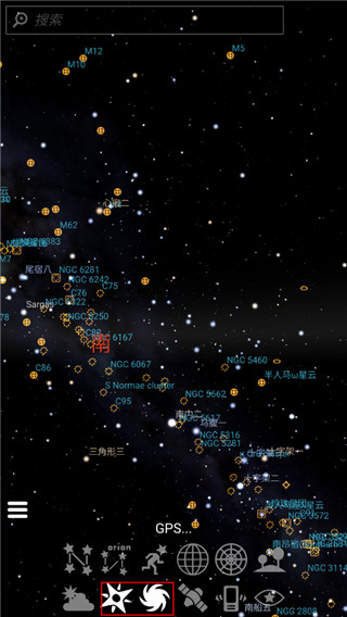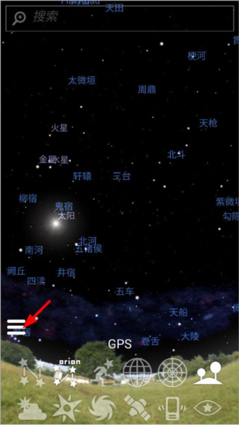 放大镜就是搜索,想找哪个星星直接输名字就行。三道杠是主菜单,里面功能更多。