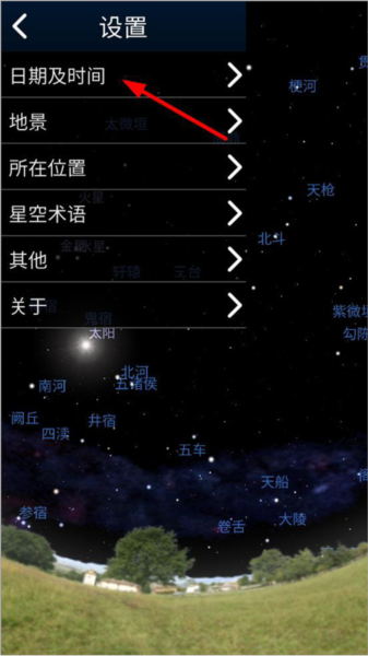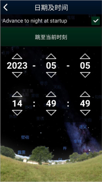 3、在这里把日期和时间调到你想看的那场流星雨的高峰期,然后返回主界面。