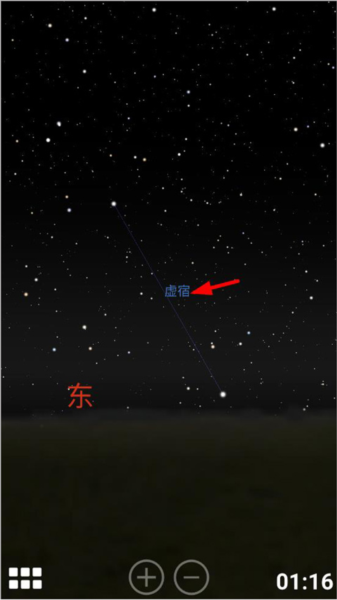 4、回到星空图,用搜索功能找到流星雨辐射点所在的星座,比如宝瓶座,在它附近的星星(比如虚宿一)周围等着,很快就能看到虚拟的流星划过了。