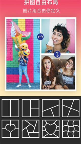 1、丰富多样的预设布局模板,横版竖版排列组合灵活多变,满足不同场景下的拼图需求;