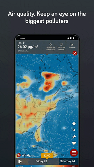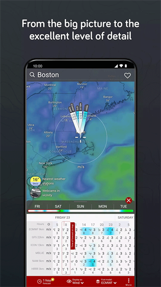 《windy》是一款可靠的天气预报APP,以独特的粒子动画可视化技术闻名,将枯燥的气象数据转化为流畅的动态风场效果,提供了从地面到高空的立体天气分析,不管你是登山探险、海上航行、航空飞行还是日常出行,都可以获得精准可靠的天气预报。