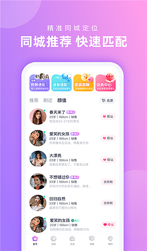 2、它用了一套挺厉害的算法,会分析你的个人资料和交友偏好,然后给你推荐那些匹配度超高的对象。这个精准推荐功能说真的,大大提升了找到合适对象的可能性,省去了好多自己瞎找的时间,体验感很高效。