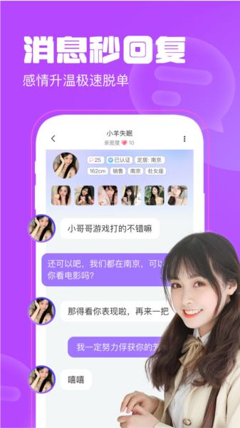 算是帅哥美女的聚集地吧,用的是现在很流行的左滑无感、右滑喜欢的模式。两个人互相看对眼了才能聊天,效率很高。