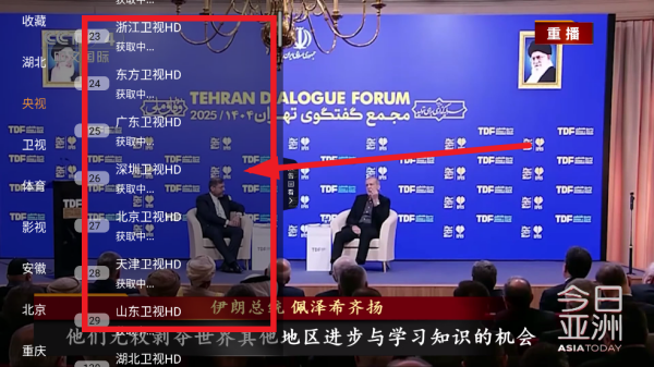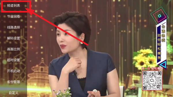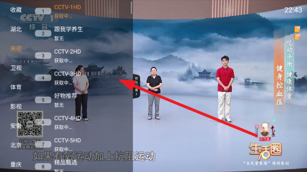 2、菜单出来后,就能看到一长串的节目列表了,各种直播频道都在这儿,上下滑动遥控器找到你想看的那个就行。