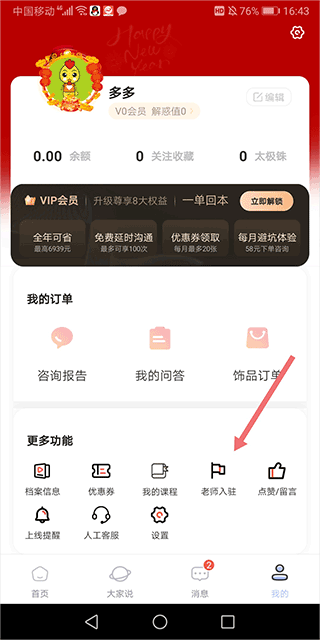 1、登录App后,在右下角找到“我的”这个选项,点进去就能看到“老师入驻”的入口。大家看下面这张截图,位置很明显。