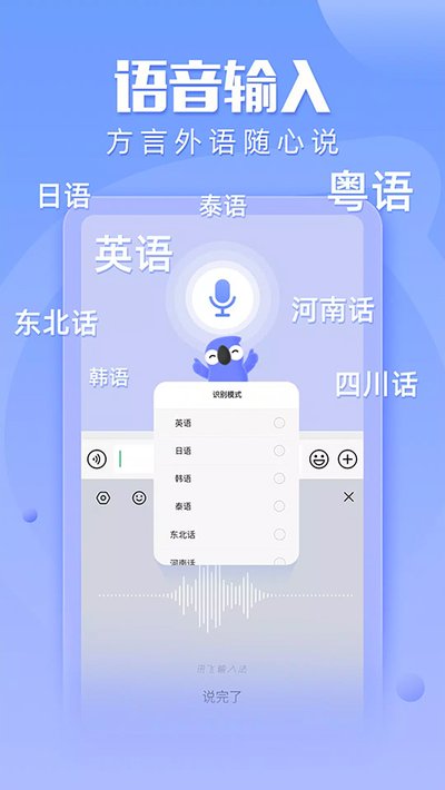 【方言输入】支持23种方言,跟家人用方言聊天也能准确识别。