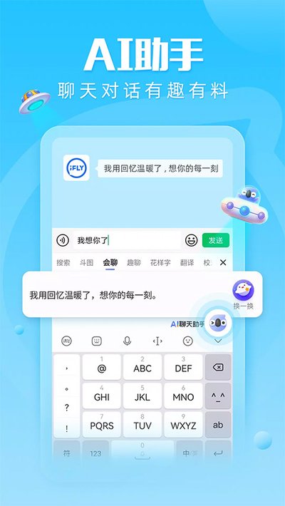 1、调出键盘后,点击键盘左上角的讯飞Logo图标。