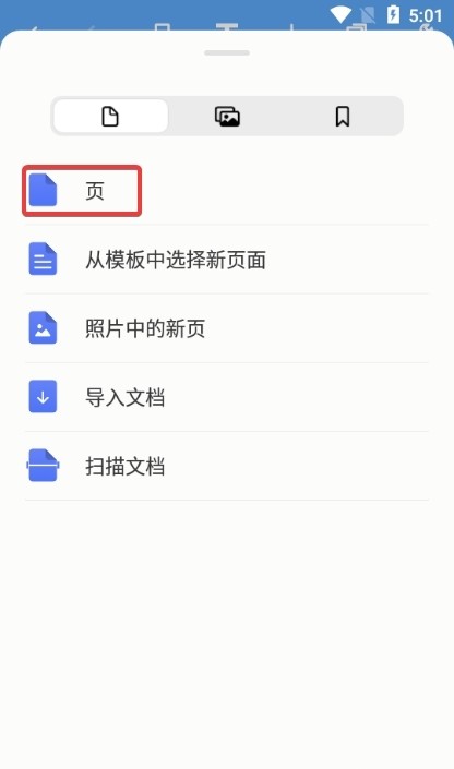 2、点开之后,选那个【页】的选项,这就等于新建了一张纸。必须得有两页以上才能翻,不然它就定在那儿不动。