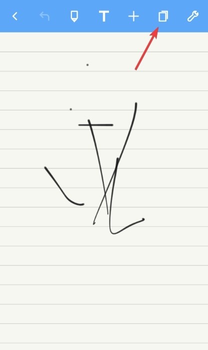 3、加完新页面,再看上面那排工具栏,找到那个像叠起来的纸一样的图标,戳一下。