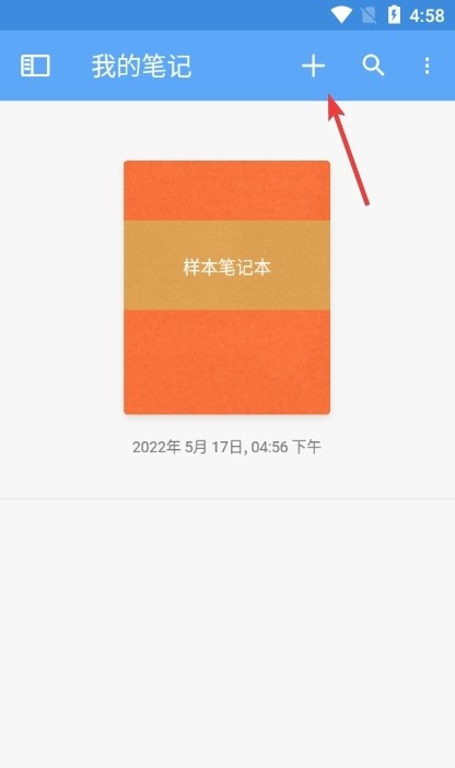 1、打开你的笔记,看到最上面那个加号图标了没?点它。