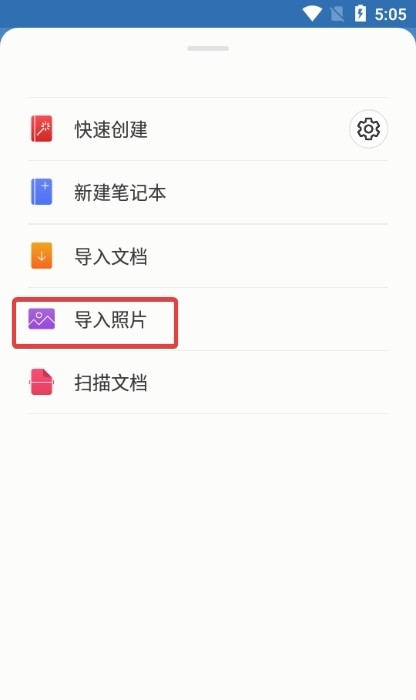 2、在弹出的菜单里,这次我们选导入照片。