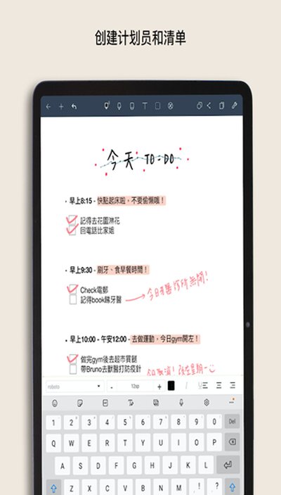 虽然主打手写,但偶尔也需要打字嘛。放心,打字的功能也不弱,字体大小颜色都能调,跟我来。