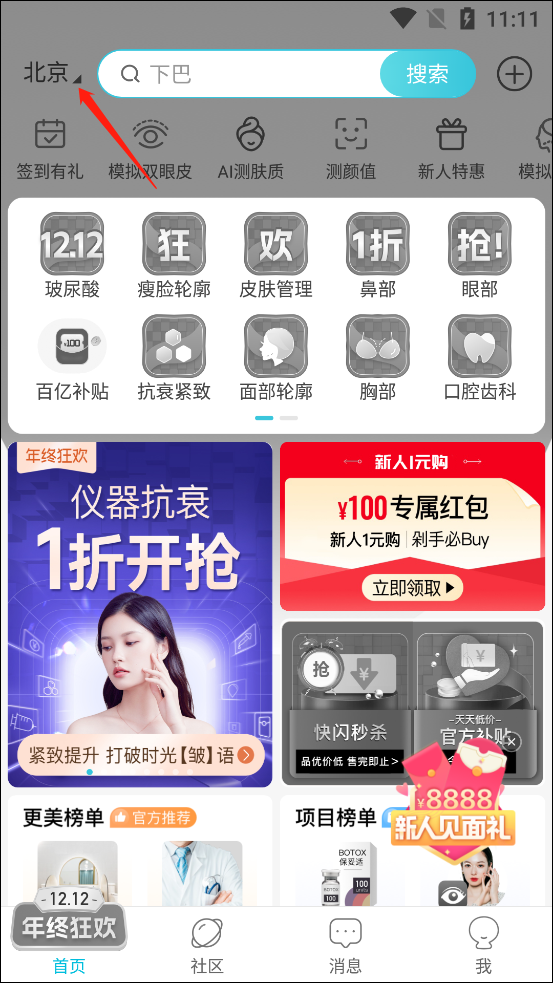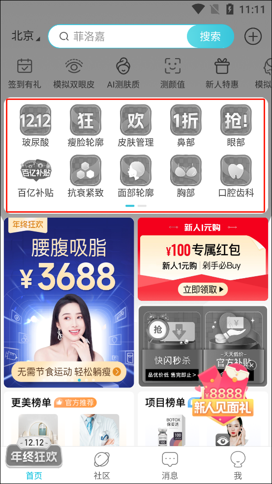 3、在“商城”这个版块里,能找到像玻尿酸、皮肤管理、除皱瘦脸这类常见的服务;