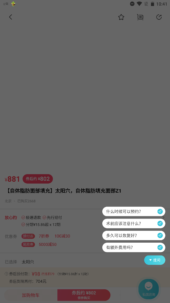 【专业咨询】专业的认证医生会在线上一对一免费给你咨询,帮你量身打造变美计划。