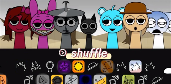 4、再试试输入 `shuffle` 这个,敲完回车你会发现,底下那一排小人的图标全换了样子。而且,它还会时不时给你随机刷一个彩蛋角色出来当节拍器,算是个小惊喜吧。