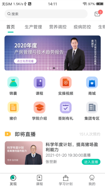 支持直接在线上课,点开就能学,帮你系统地补充养猪知识,干货满满。