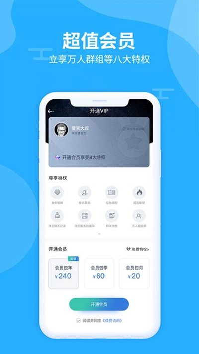最多能容纳一万人的大群,这个太顶了。群里还有成员保护、匿名聊天、指定某人隐身这些特殊玩法,比普通群聊有意思多了。