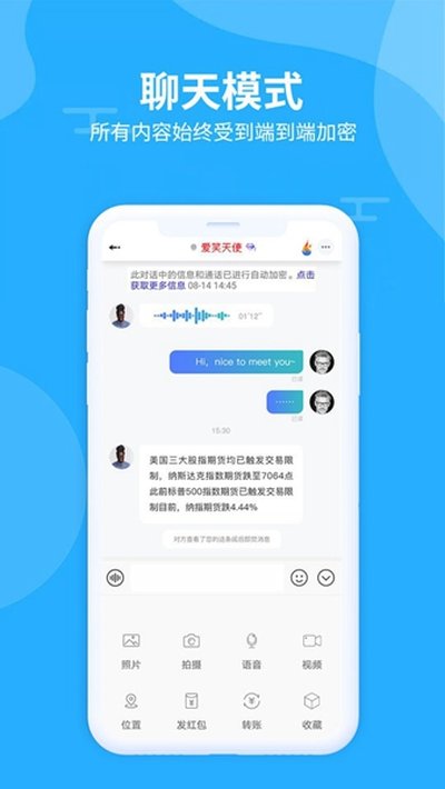 2、它用的是那种强度很高的商业级加密算法,对聊天数据进行端到端处理,说白了就是把你的隐私安全放在第一位。