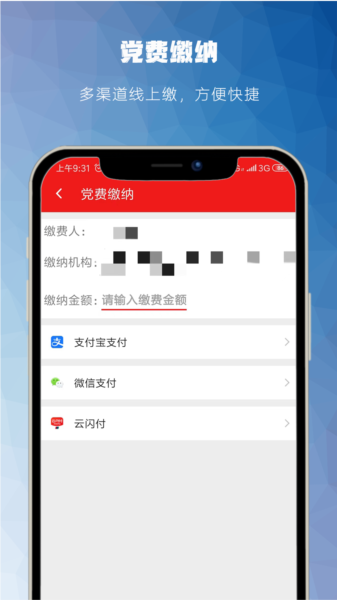交党费这个环境是安全加密的,用着挺放心,有安全保障。看下面这张图,界面还挺清爽的。