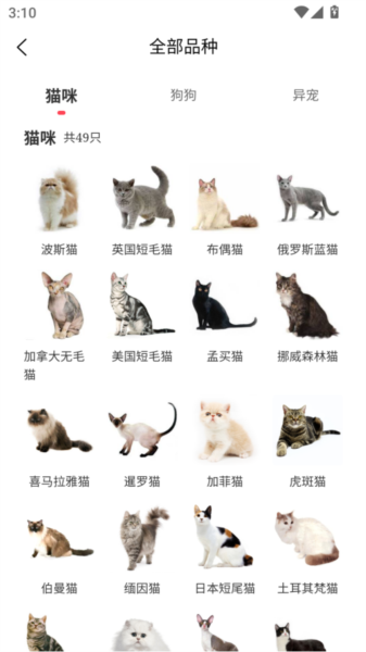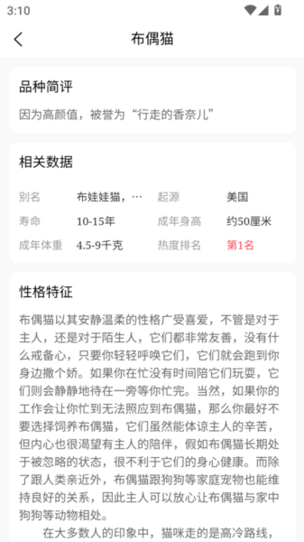 每一只小可爱都有自己的详细资料页,品种和背景介绍都给你列清楚,让你心里有底。