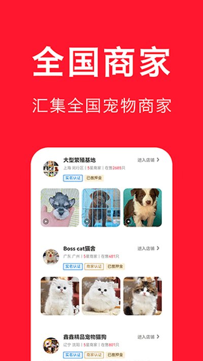 它整合了全国好几千家犬舍和猫舍,几万只宠物在线直卖。你可以直接跟商家聊,跳过了很多中间环节。