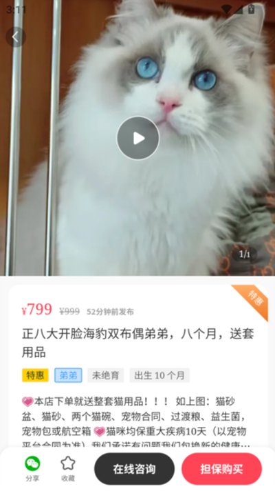 主打的就是一个“真实”,号称100%实拍。平台对商家入驻有三道审核,卡得比较严,就是为了保证宠物的真实性。而且交易资金由平台托管,10天健康保障期内出问题了可以追溯,有问题反馈处理也比较及时。