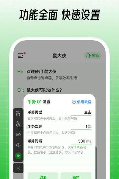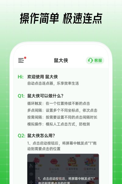 鼠大侠连点器还有自定义开关、识图辅助这些挺实用的功能,能覆盖各种自动化场景。感觉开发者是在简单高效的基础上,一直在加新东西,想给用户最好的体验。如果你平时有自动化操作或者连点这方面的需求,可以下来试试,鼠大侠绝对能满足你。
