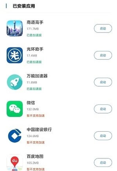 1、打开App主界面,列表里找到你想加速的应用或游戏,直接点“一键加速”。大家看下面这张截图。