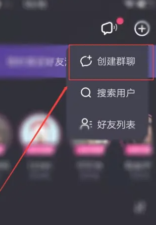 3.点开加号之后,在弹出的菜单里选择“创建群聊”。