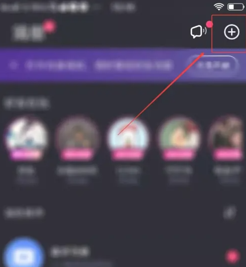 2.看到消息页面的右上角那个“+”号了吗?对,就是它。