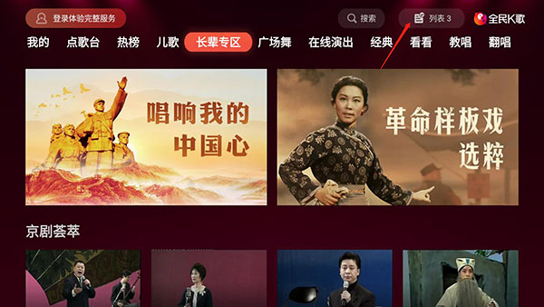 4、此外,平台还设有热歌榜、儿歌、长辈、广场舞、在线演唱会及经典老歌等多个特色分区,方便你在其中发现并点播心仪的曲目。。