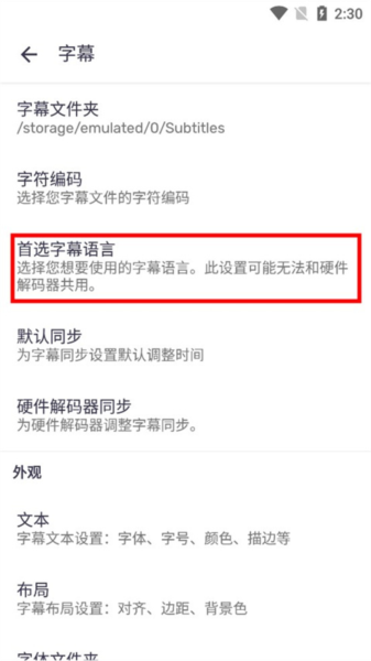 4、在字幕设置里,找到“首选字幕语言”,这个就是我们要改的地方。