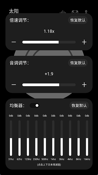 音效这块给得很专业。里面预设了好几种均衡器,当然你也可以自己动手调。歌曲的播放速度、音调、EQ这些都能随心所欲地改,满足各种挑剔的耳朵。