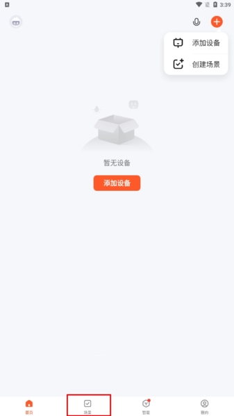 1、在App首页,还是点那个“+”号,这次选“创建场景”。
