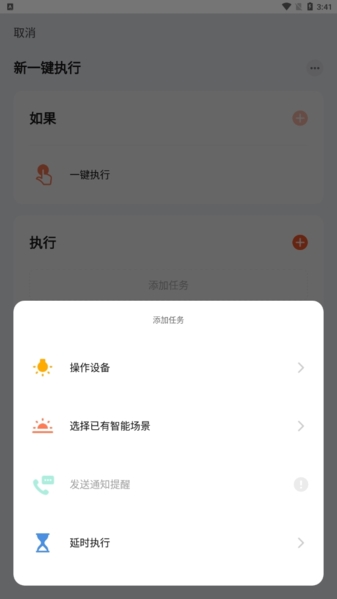 7、看到那个“执行”旁边的加号没,点它,然后去选你要控制的设备和具体操作。