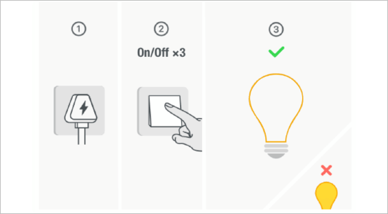 一般灯泡类的,就是反复开关个3次。其他设备大多是长按重置按钮5秒钟。看到指示灯在那儿不停地闪,就说明设备已经准备好配网了。