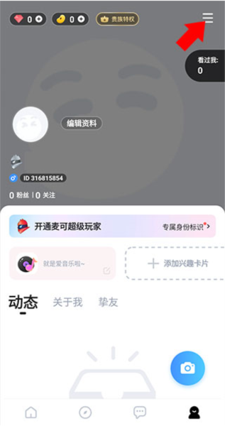 2、跳转到“我的”界面之后,点击右上角那个三条杠的图标。