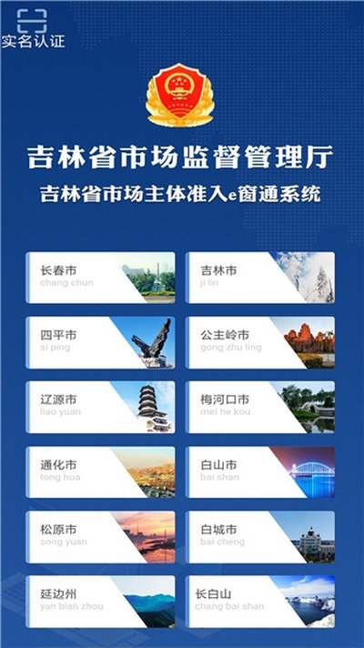 1、打开吉林e窗通应用并选择所属城市,进入系统首页。